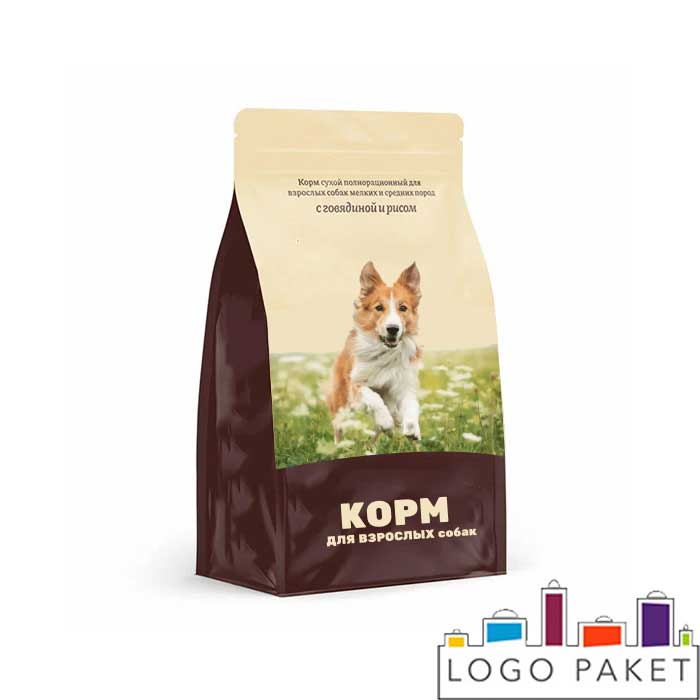 Компания «Логопакет» имеет собственное производство и предлагает купить пакеты с фальцами для кормов животным оптом с доставкой во все города России. При оформлении заказа укажите размер пакета, материал, информацию о печати.